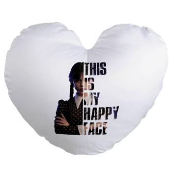 Wednesday, This is my happy face, Μαξιλάρι καναπέ καρδιά 40x40cm περιέχεται το γέμισμα