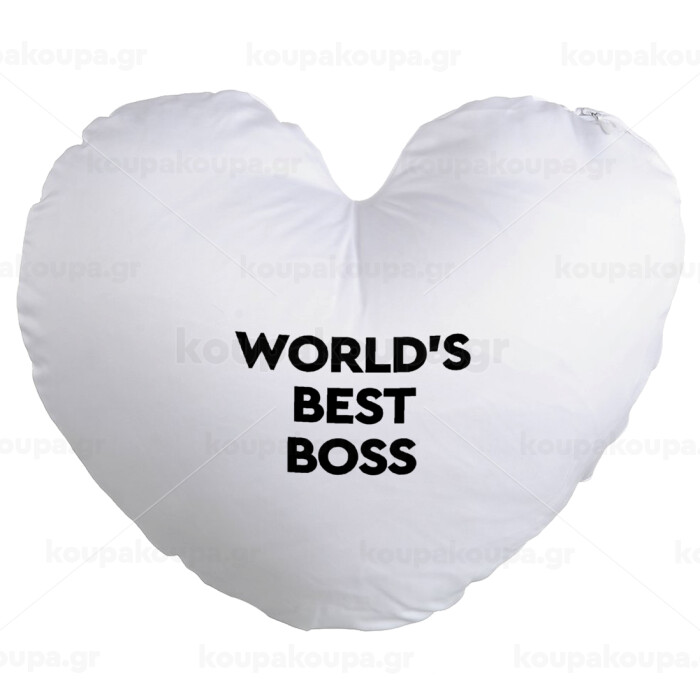 World's best boss, Μαξιλάρι καναπέ καρδιά 40x40cm περιέχεται το γέμισμα
