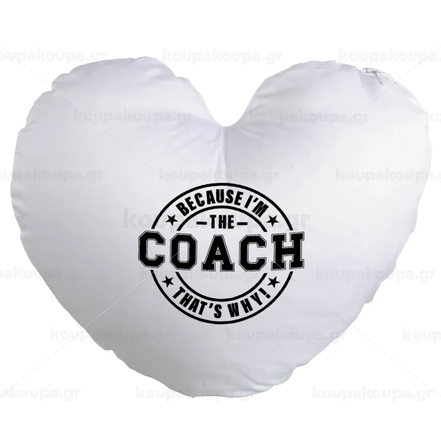 Because i'm the Coach, Μαξιλάρι καναπέ καρδιά 40x40cm περιέχεται το γέμισμα
