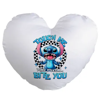 Stitch Touch Me And I Will Bite You, Μαξιλάρι καναπέ καρδιά 40x40cm περιέχεται το γέμισμα