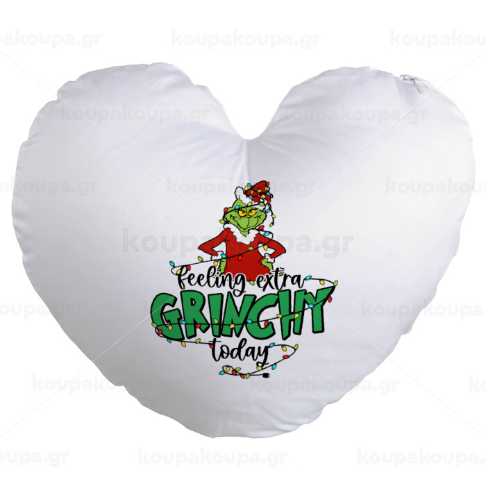 Grinch Feeling Extra Grinchy Today, Μαξιλάρι καναπέ καρδιά 40x40cm περιέχεται το γέμισμα