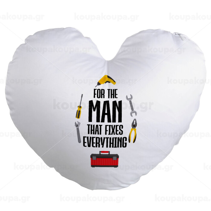 For the man that fixes everything!, Μαξιλάρι καναπέ καρδιά 40x40cm περιέχεται το γέμισμα