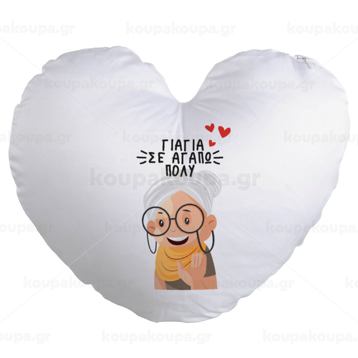Γιαγιά σε αγαπώ πολύ!, Μαξιλάρι καναπέ καρδιά 40x40cm περιέχεται το γέμισμα