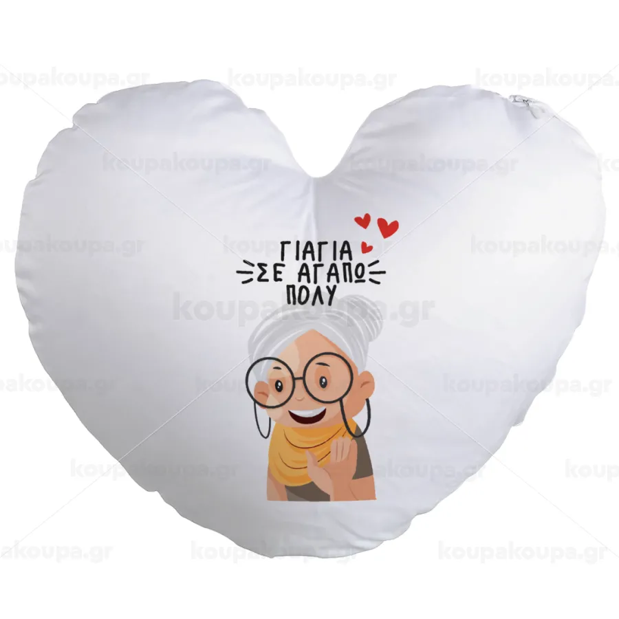 Γιαγιά σε αγαπώ πολύ!, Μαξιλάρι καναπέ καρδιά 40x40cm περιέχεται το γέμισμα