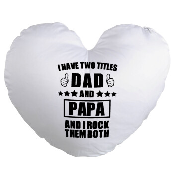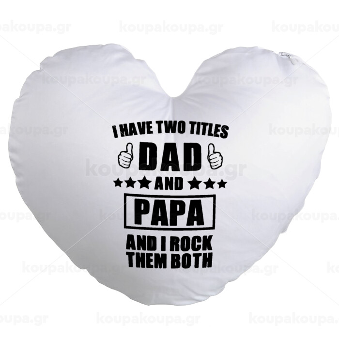I have two title, DAD & PAPA, Μαξιλάρι καναπέ καρδιά 40x40cm περιέχεται το γέμισμα