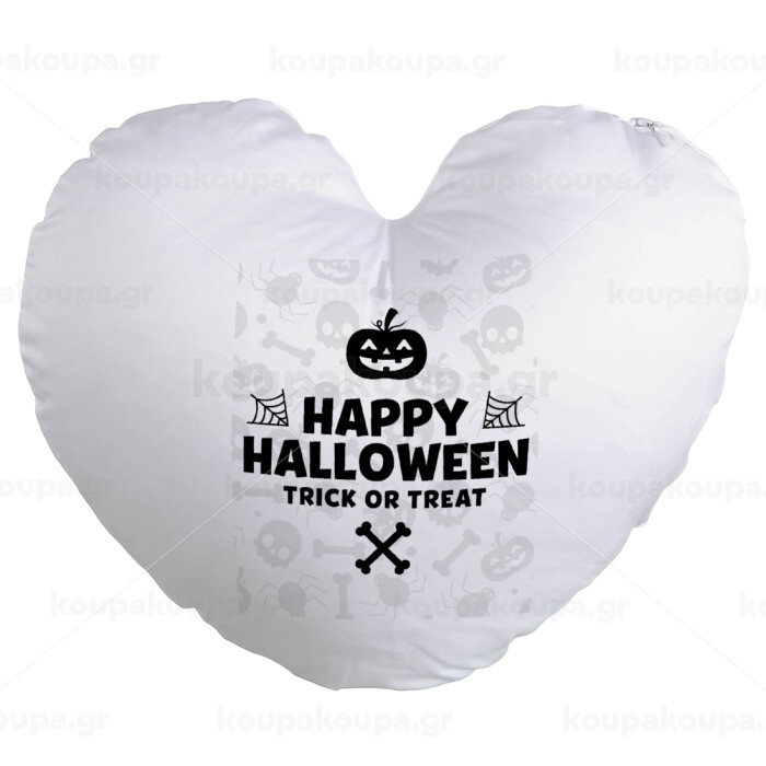 Happy Halloween pumpkin, Μαξιλάρι καναπέ καρδιά 40x40cm περιέχεται το γέμισμα