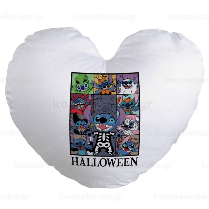Stitch Halloween, Μαξιλάρι καναπέ καρδιά 40x40cm περιέχεται το γέμισμα
