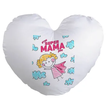 Στην SUPER μαμά μου, comic, Μαξιλάρι καναπέ καρδιά 40x40cm περιέχεται το γέμισμα