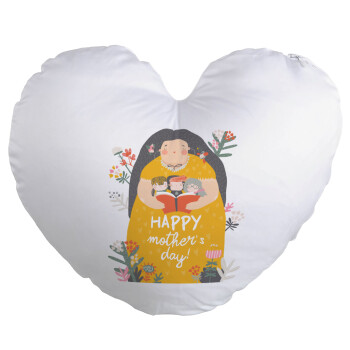 Cute mother reading book, happy mothers day, Μαξιλάρι καναπέ καρδιά 40x40cm περιέχεται το γέμισμα