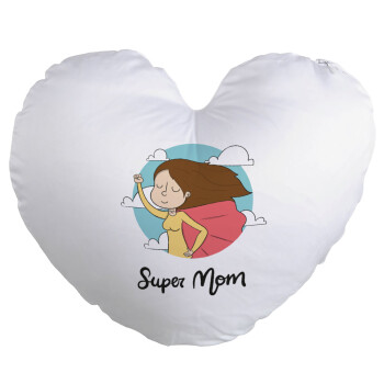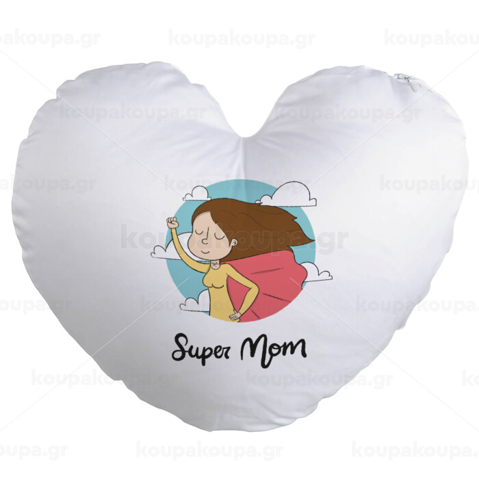 Super mom, Μαξιλάρι καναπέ καρδιά 40x40cm περιέχεται το γέμισμα