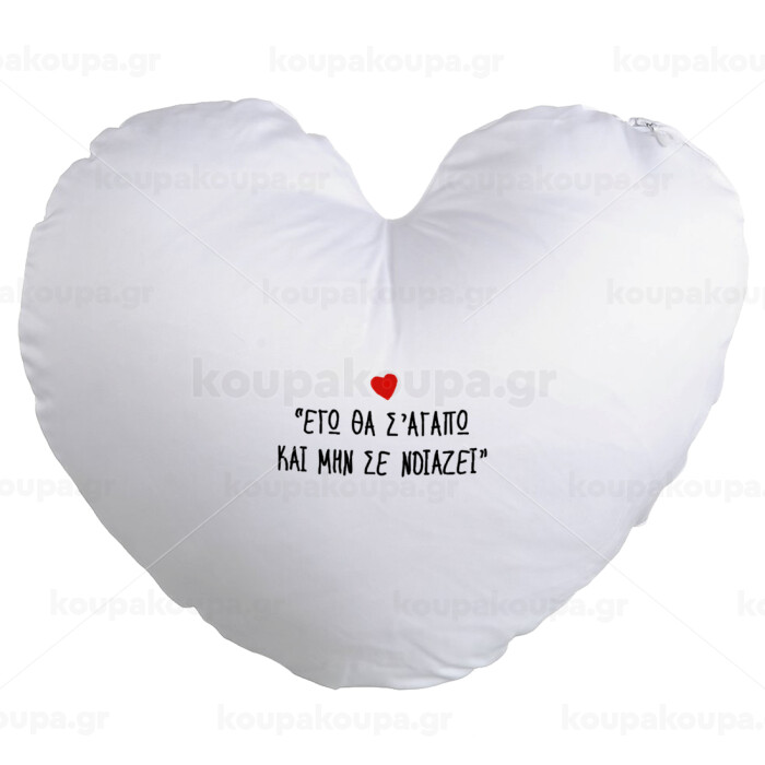 ΕΓΩ ΘΑ Σ’ΑΓΑΠΩ ΚΑΙ ΜΗΝ ΣΕ ΝΟΙΑΖΕΙ..., Μαξιλάρι καναπέ καρδιά 40x40cm περιέχεται το γέμισμα