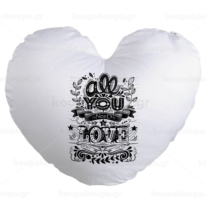 All you need is love, Μαξιλάρι καναπέ καρδιά 40x40cm περιέχεται το γέμισμα