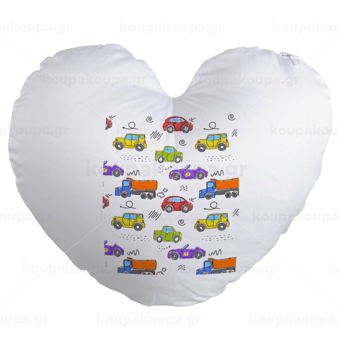 Colorful cars, Μαξιλάρι καναπέ καρδιά 40x40cm περιέχεται το γέμισμα
