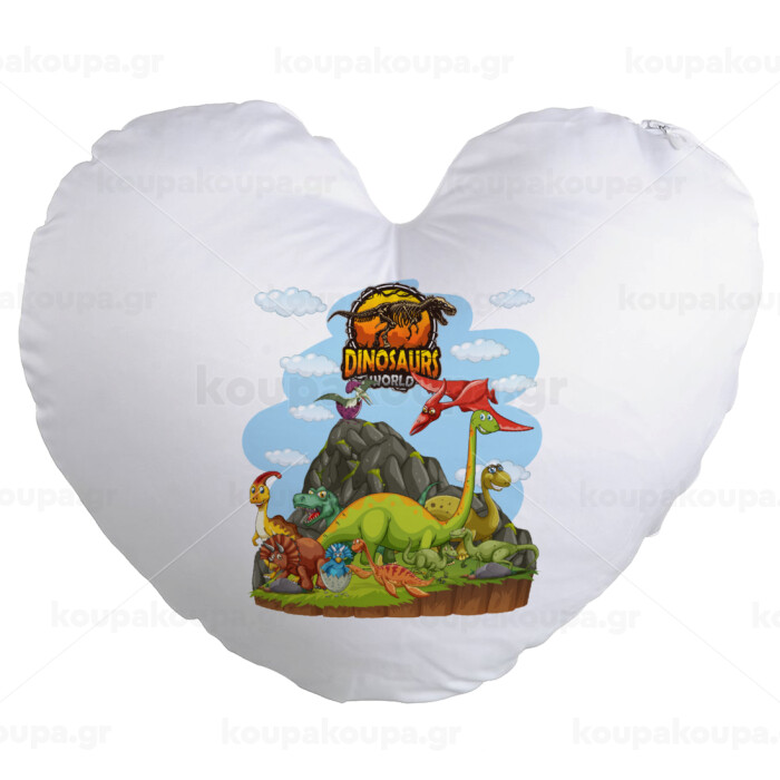 Dinosaur's world, Μαξιλάρι καναπέ καρδιά 40x40cm περιέχεται το γέμισμα