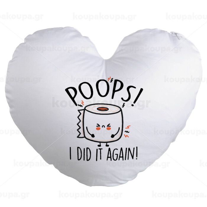 Poops!...I Did It Again, Μαξιλάρι καναπέ καρδιά 40x40cm περιέχεται το γέμισμα