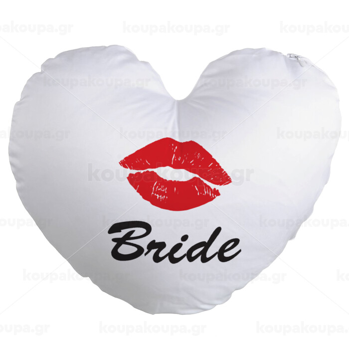 Bride kiss, Μαξιλάρι καναπέ καρδιά 40x40cm περιέχεται το γέμισμα