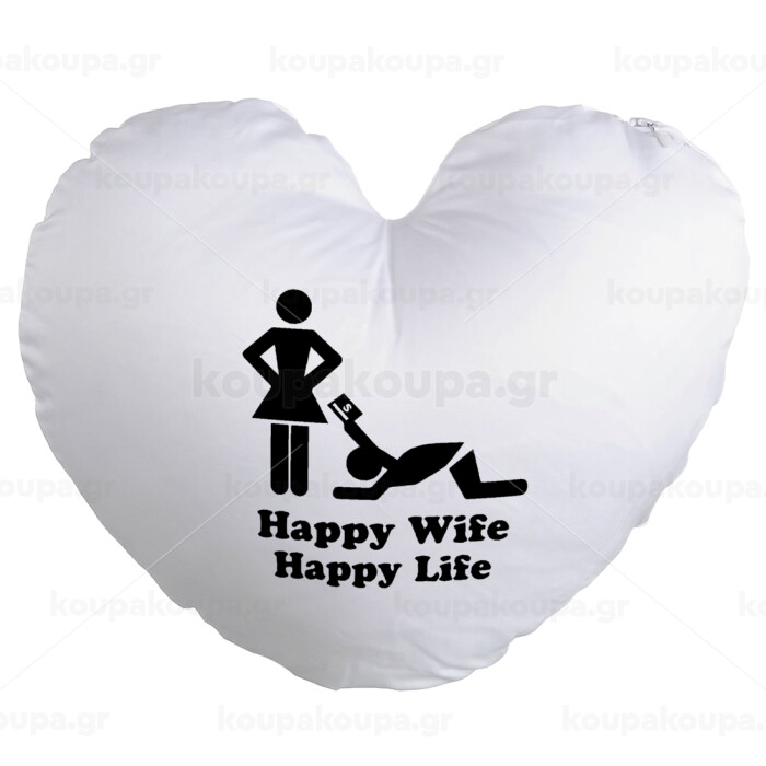 Happy Wife, Happy Life, Μαξιλάρι καναπέ καρδιά 40x40cm περιέχεται το γέμισμα