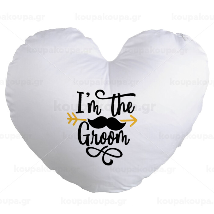 I'm the groom mustache, Μαξιλάρι καναπέ καρδιά 40x40cm περιέχεται το γέμισμα