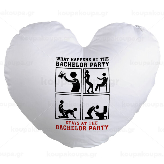 What happens at the bachelor party, stays at the bachelor party!, Μαξιλάρι καναπέ καρδιά 40x40cm περιέχεται το γέμισμα