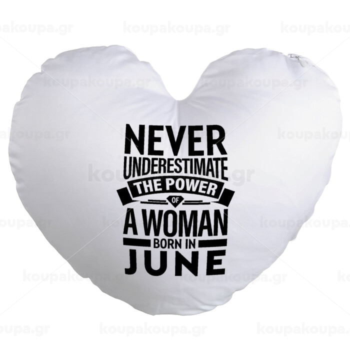 Never Underestimate the poer of a Woman born in..., Μαξιλάρι καναπέ καρδιά 40x40cm περιέχεται το γέμισμα