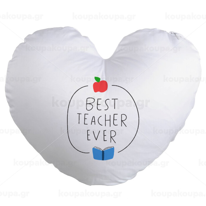 Best teacher ever, Μαξιλάρι καναπέ καρδιά 40x40cm περιέχεται το γέμισμα