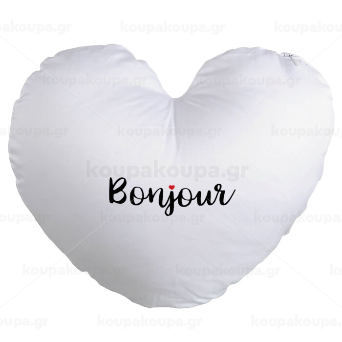 Bonjour, Μαξιλάρι καναπέ καρδιά 40x40cm περιέχεται το γέμισμα
