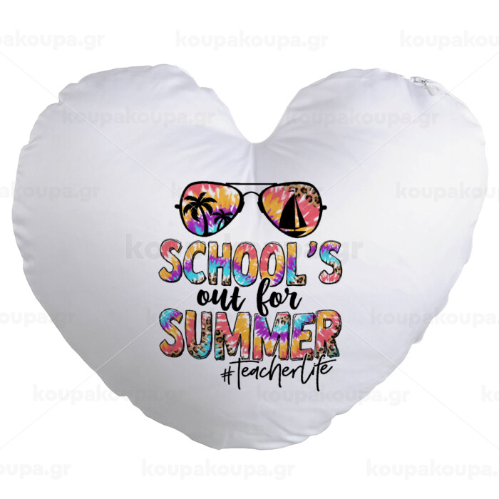 School's Out For Summer Teacher Life, Μαξιλάρι καναπέ καρδιά 40x40cm περιέχεται το γέμισμα
