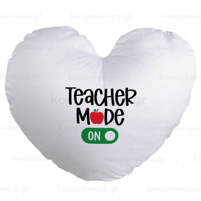 Teacher mode ON, Μαξιλάρι καναπέ καρδιά 40x40cm περιέχεται το γέμισμα