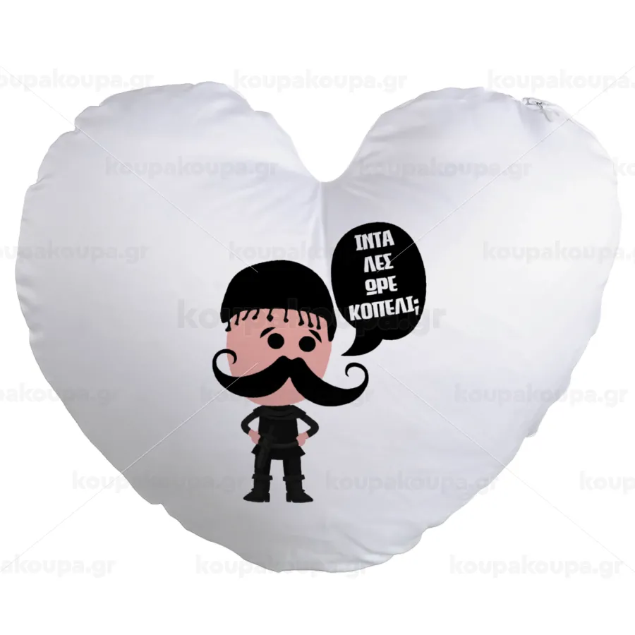 Κρητικός "Ίντα λες ωρέ κοπέλι", Μαξιλάρι καναπέ καρδιά 40x40cm περιέχεται το γέμισμα