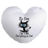 Cat, It's Fine I'm Fine Everything Is Fine, Μαξιλάρι καναπέ καρδιά 40x40cm περιέχεται το γέμισμα