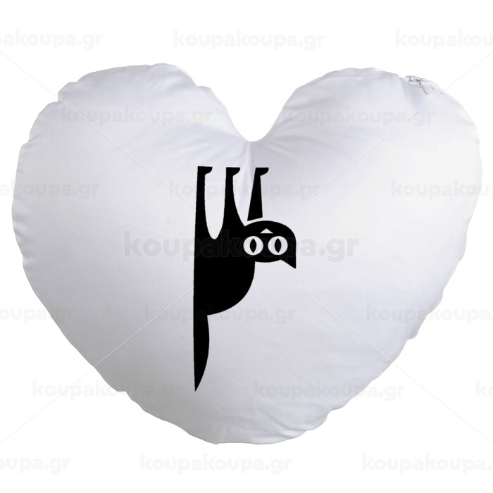 Cat upside down, Μαξιλάρι καναπέ καρδιά 40x40cm περιέχεται το γέμισμα