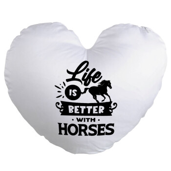 Life is Better with a Horses, Μαξιλάρι καναπέ καρδιά 40x40cm περιέχεται το γέμισμα
