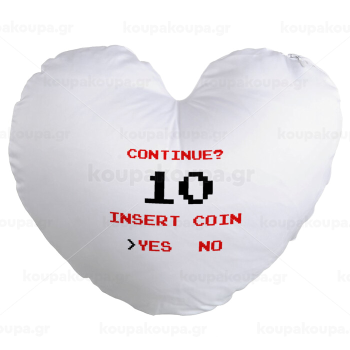 Continue? YES - NO, Μαξιλάρι καναπέ καρδιά 40x40cm περιέχεται το γέμισμα