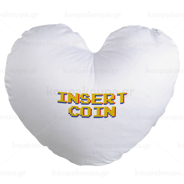 Insert coin!!!, Μαξιλάρι καναπέ καρδιά 40x40cm περιέχεται το γέμισμα