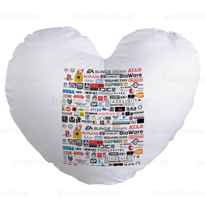 Video Game Studio Logos, Μαξιλάρι καναπέ καρδιά 40x40cm περιέχεται το γέμισμα