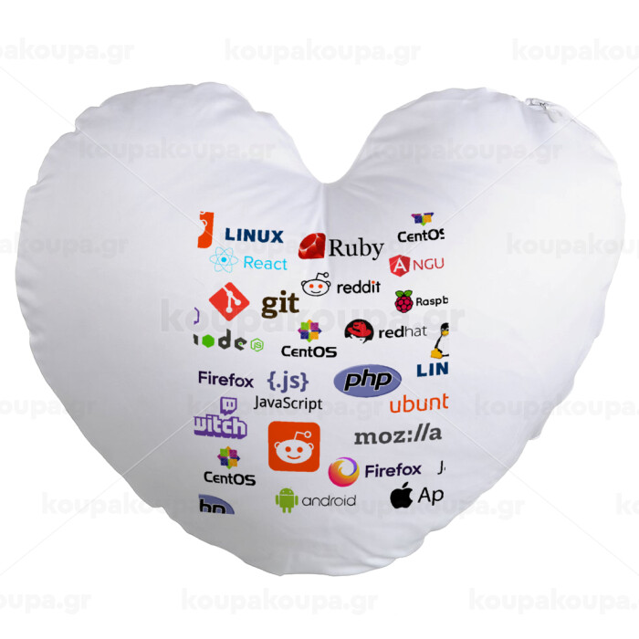Tech logos, Μαξιλάρι καναπέ καρδιά 40x40cm περιέχεται το γέμισμα