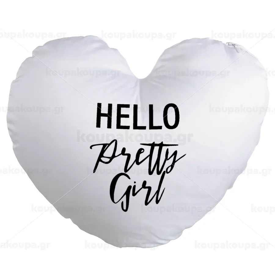 Hello pretty girl, Μαξιλάρι καναπέ καρδιά 40x40cm περιέχεται το γέμισμα