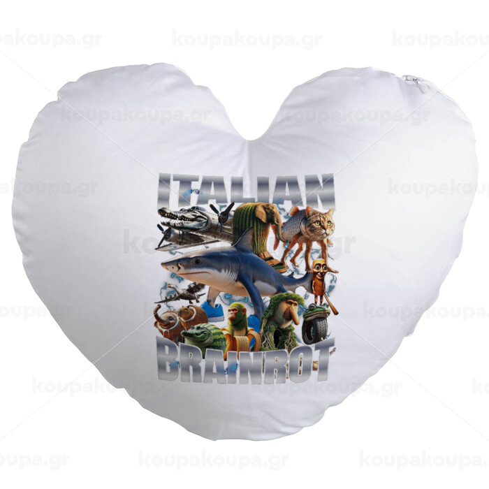 Italian Brainrot, Μαξιλάρι καναπέ καρδιά 40x40cm περιέχεται το γέμισμα