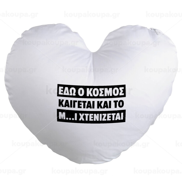 Εδώ ο κόσμος καίγεται και το Μ....Ι χτενίζεται, Μαξιλάρι καναπέ καρδιά 40x40cm περιέχεται το γέμισμα