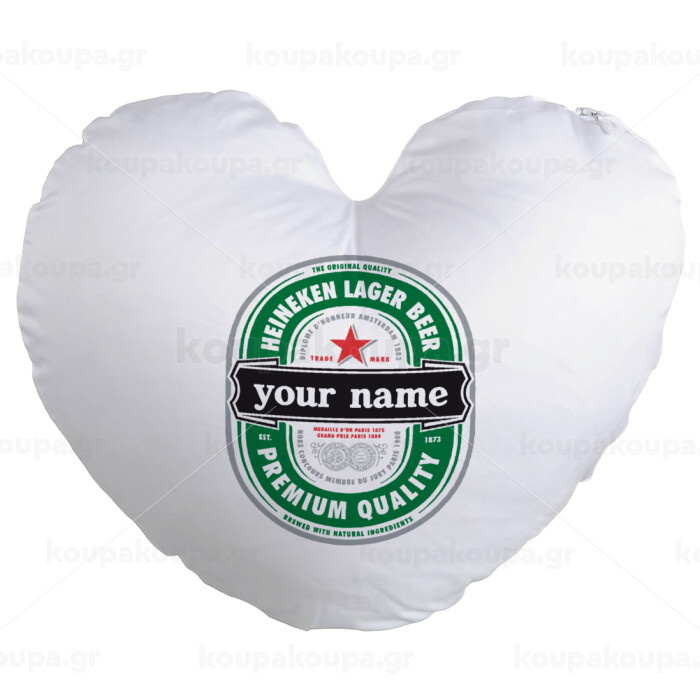 Heineken with name, Μαξιλάρι καναπέ καρδιά 40x40cm περιέχεται το γέμισμα