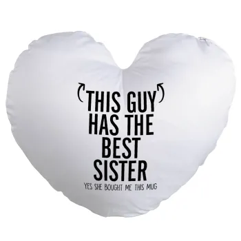 This guy has the best Sister, Μαξιλάρι καναπέ καρδιά 40x40cm περιέχεται το γέμισμα