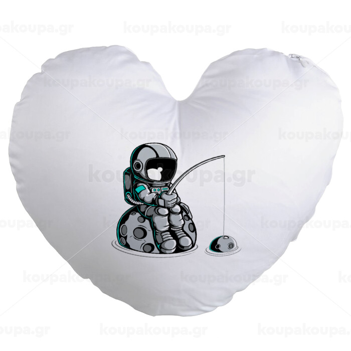 Little astronaut fishing, Μαξιλάρι καναπέ καρδιά 40x40cm περιέχεται το γέμισμα
