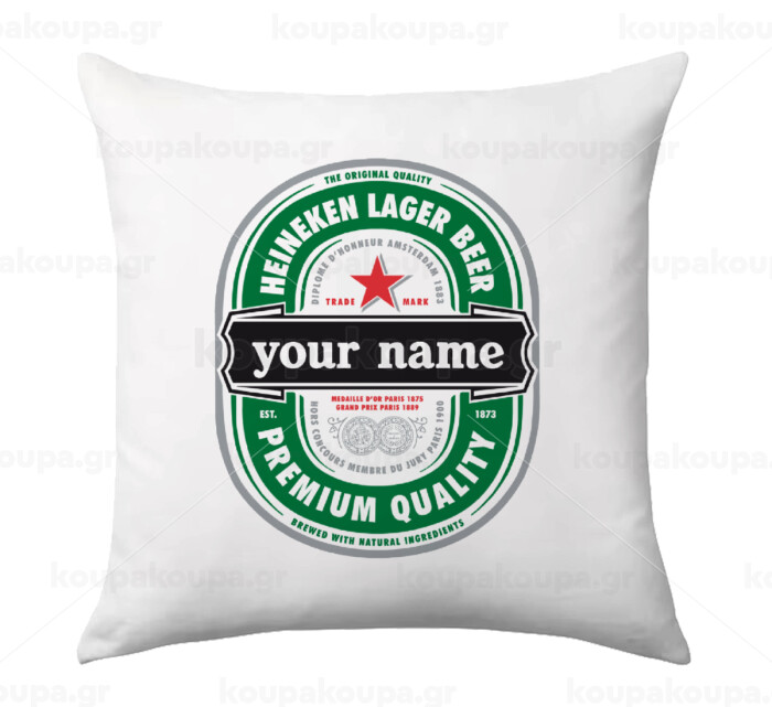 Heineken with name, Sofa cushion 40x40cm includes filling