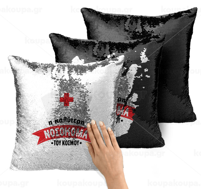 Η καλύτερη νοσοκόμα του κόσμου!!!, Μαξιλάρι καναπέ Μαγικό Μαύρο με πούλιες 40x40cm περιέχεται το γέμισμα