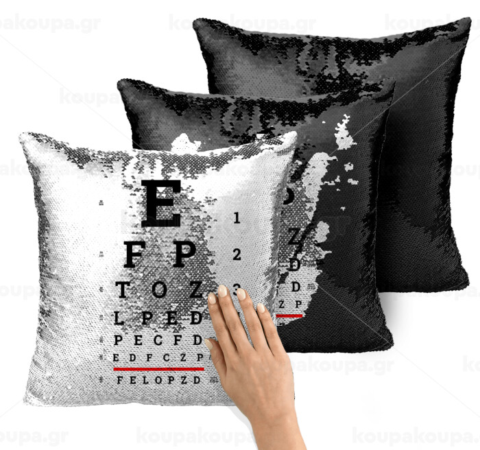 EYE test chart, Μαξιλάρι καναπέ Μαγικό Μαύρο με πούλιες 40x40cm περιέχεται το γέμισμα