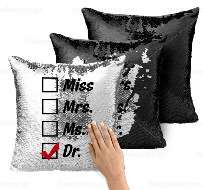 Miss, Mrs, Ms, DR, Μαξιλάρι καναπέ Μαγικό Μαύρο με πούλιες 40x40cm περιέχεται το γέμισμα