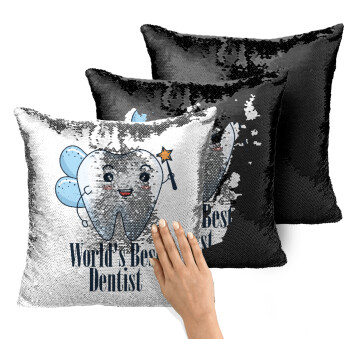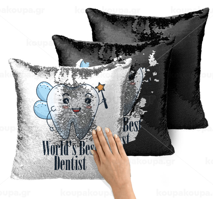 World's Best Dentist, Μαξιλάρι καναπέ Μαγικό Μαύρο με πούλιες 40x40cm περιέχεται το γέμισμα