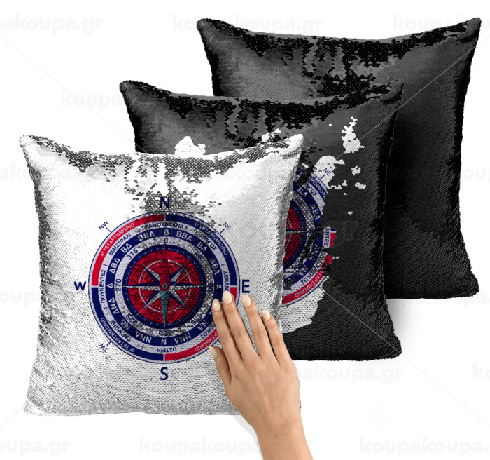 Wind compass, Μαξιλάρι καναπέ Μαγικό Μαύρο με πούλιες 40x40cm περιέχεται το γέμισμα