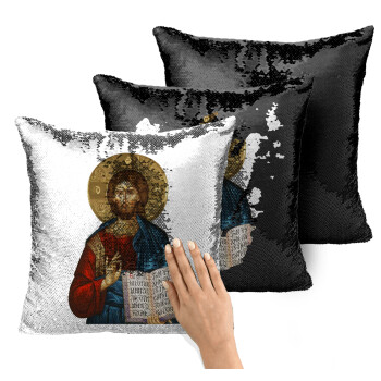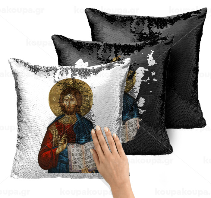 Jesus, Μαξιλάρι καναπέ Μαγικό Μαύρο με πούλιες 40x40cm περιέχεται το γέμισμα