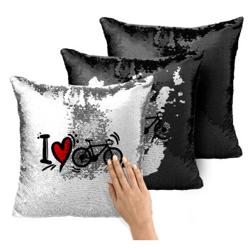 I love my bike, Μαξιλάρι καναπέ Μαγικό Μαύρο με πούλιες 40x40cm περιέχεται το γέμισμα